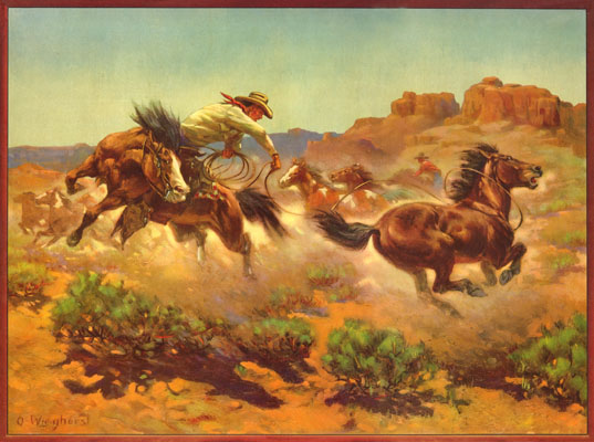 This action packed print of a cowboy roping