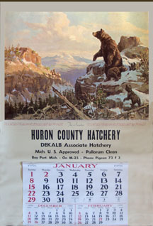 1956 Huron County Hatchery wall calendar measures 48 x 30 inches.