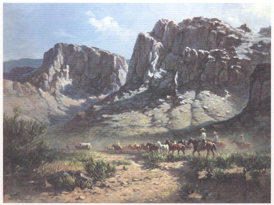 From a 1967 painting titled: Wagon and Remuda