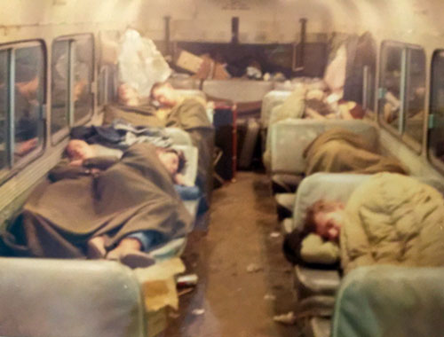 Shorty, Stoney, and Richard Bird Richard Byrd - Quit cooking and joined the Horse Platoon in 1972 Can't Remember Doug Biggs in front of the Bunkhouse Sleeping on the Bus Need some names
