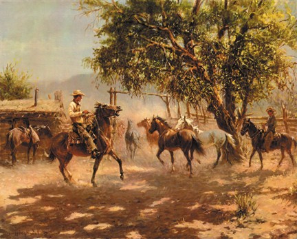 Corralling the Cavvy (Classic Series) Print Size: 26" x 32" Image Size: 19 1/4" x 24" Issued: 1974@ $100 Edition Size: 1000 s/n