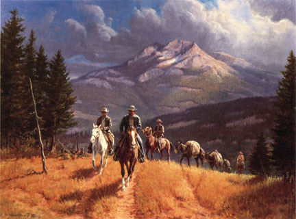 Mountain Pack Train (Legacy Collection) Print Size: 25" x 30" Image Size: 18 1/2" x 25" Issued: 1989 @$600 Edition Size 1500 s/n (Includes Companion Print Below) and a certificate of authenticity.