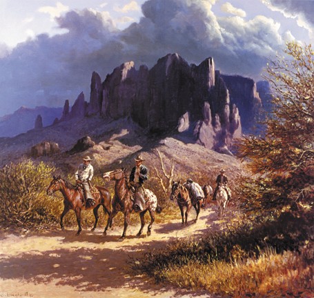 Superstition Trail (Golden West Collection III) Print Size: 25" x 25" Image Size: 18 1/2" x 19 1/2" Issued: 1985@ $250 Edition Size: 1500 s/n The print comes with a certificate of authenticity.
