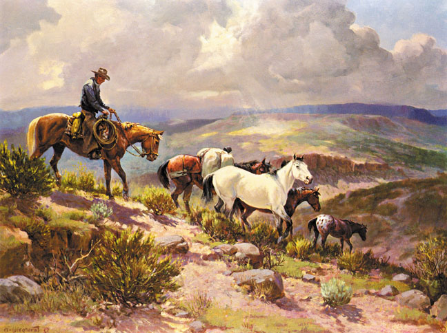 valley below. He is perhaps drifting to a new ranch to seek