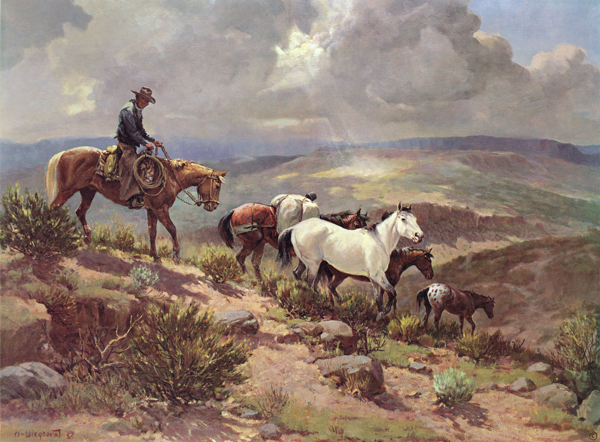 His Wealth is the title of this painting by Olaf Wieghorst that shows