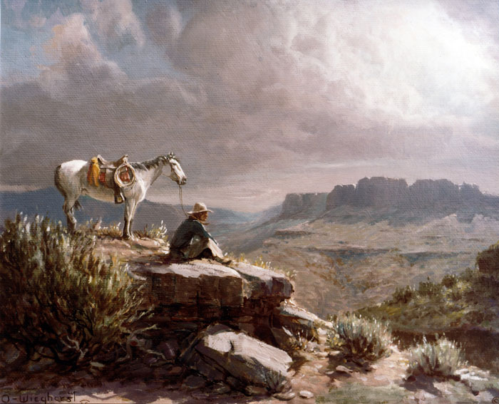 vastness of the desert and mountains before him. This painting
