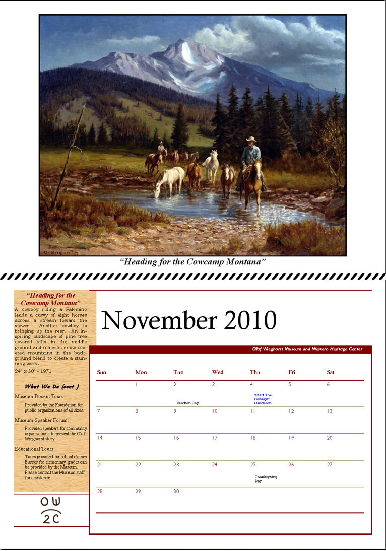 and Western Heritage Center Presents The Olaf Wieghorst 2011 Commemerative Calendar